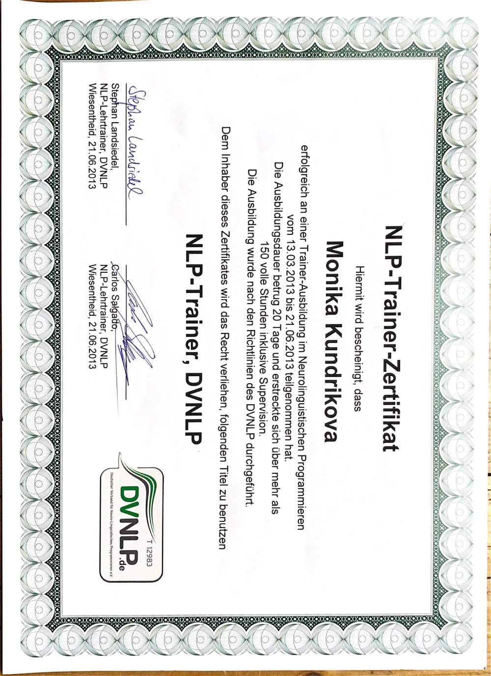 2013 Ausbildung zu NLP Trainer bei Stephan Landsiedel mit Abschluss NLP Trainer, DVNLP